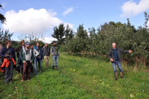 Because of the growing interest in agroforestry in Flanders and the raised questions on how to apply agroforestry in horticulture, the Consortium ‘Agroforestry in Flanders’ organised in September 2017 an excursion to the UK. With a group of fifty interested farmers and researchers, we visited Martin Crawford (Agroforestry Research Trust), Martyn Bragg (Shillingford Organics), Duchy Home Farm, and Iain Tolhurst (Tolhurst Organic).