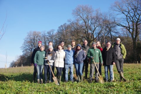 During their final meeting and to help the sector, the partners put their backs into the planting of a new forest garden of 3 ha in Asse, Belgium. On Tuesday 10 December they planted the first trees of this initiative.