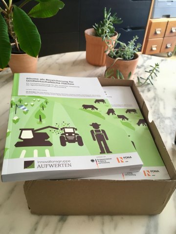 The handbook "Trees as an enrichment for agricultural land – an innovation concept for a broader implementation of agroforestry in Germany" comprehensively analyses the current situation of agroforestry in Germany and provides ideas and impulses for an improvement of the framework conditions. Its intention is to convey the essential possibilities and opportunities of agroforestry in a concise form in such a way as to facilitate thinking in contexts.
