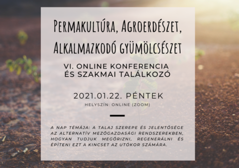 On the 22th of January 2021, the sixth Permaculture, Agroforestry and Traditional Fruit Growing conference was held on an online platform organized jointly by the Hungarian Permaculture Association, Hungarian Agroforestry Network and the Carpathian Network of Traditional Fruit Growers. The conference theme was the role and significance of SOIL in alternative farming systems, how we can preserve, regenerate, and build this treasure for the next generations. The effect of Agroforstry systems on soil properties was priority topic, where Andrea Vityi, Zita Szalai, and Claudia Kovács (EURAF members) participated with presentations.